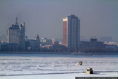 24 Примерно посередине реки стоят будки пограничников. Хэйхэ виден, как на ладони. Каждый вечер китайцы устраивают световое шоу, все дома причудливо подсвечиваются разными цветами, а потом всё гаснет: электричество они покупают у нас. Благовещенск не заморачивается с созданием имиджа.
