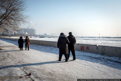 23 Крепок лёд Амура, и не нужны зимой мосты. Но перебраться на тот берег можно только организованно, на автобусе. Просто так речку не перейти — граница.